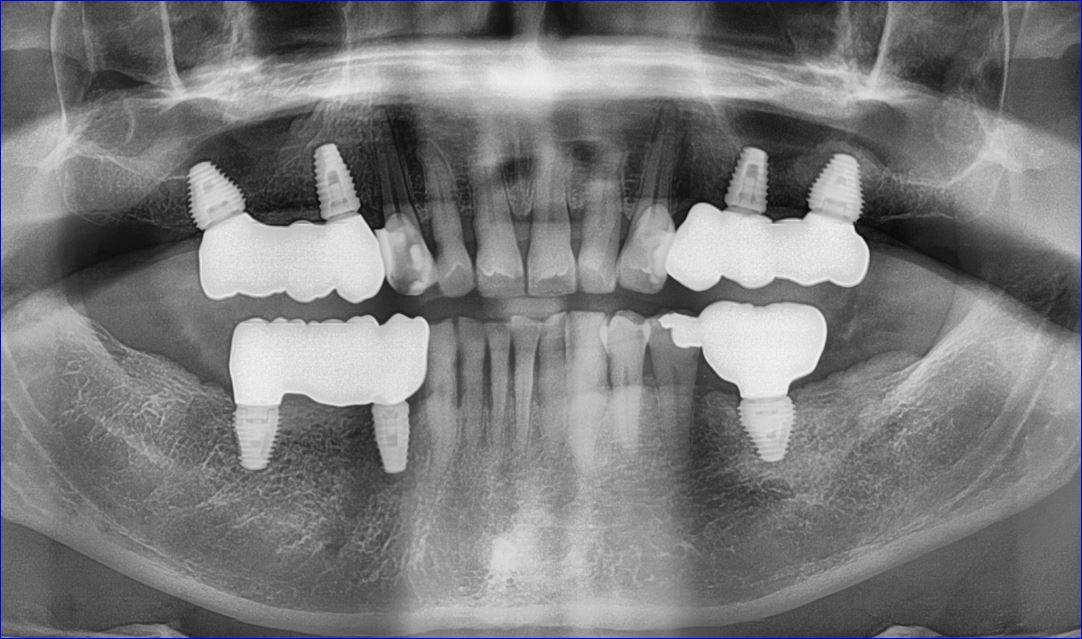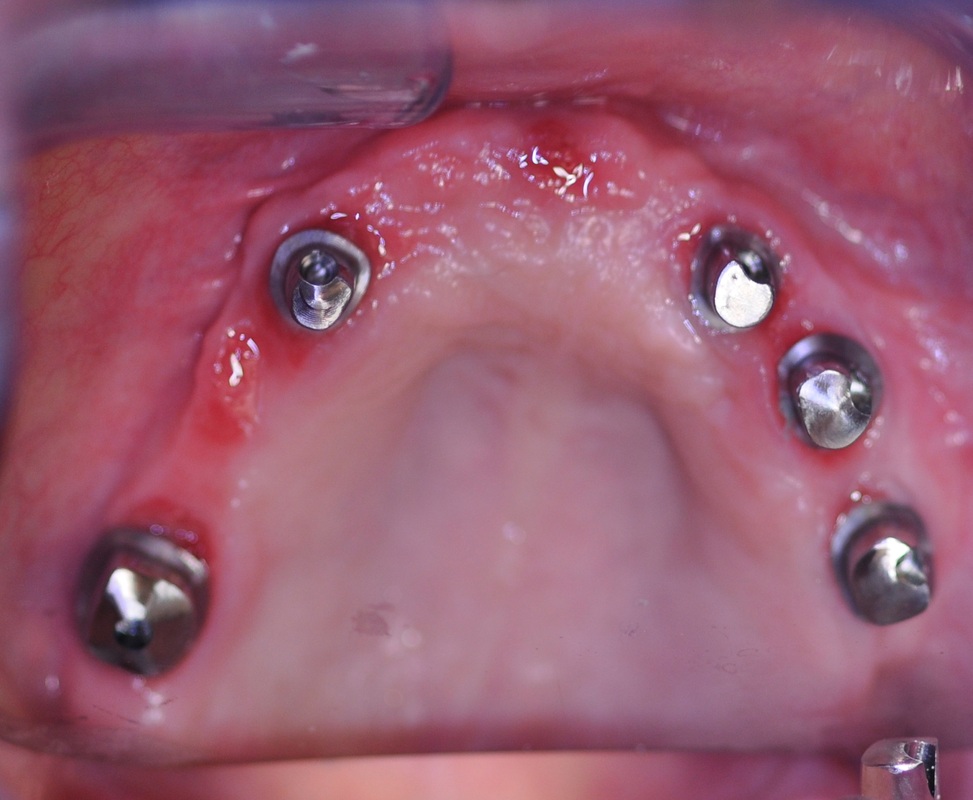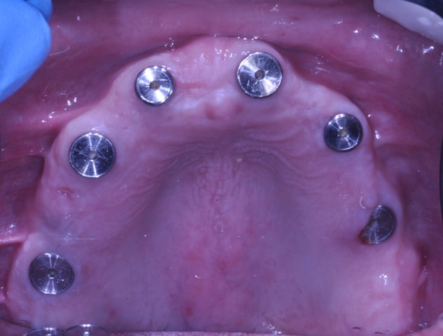Dr. Andrews performed a SINGLE surgery – 7 implants placed along with few extractions and bi-lateral crestal sinus lifts.