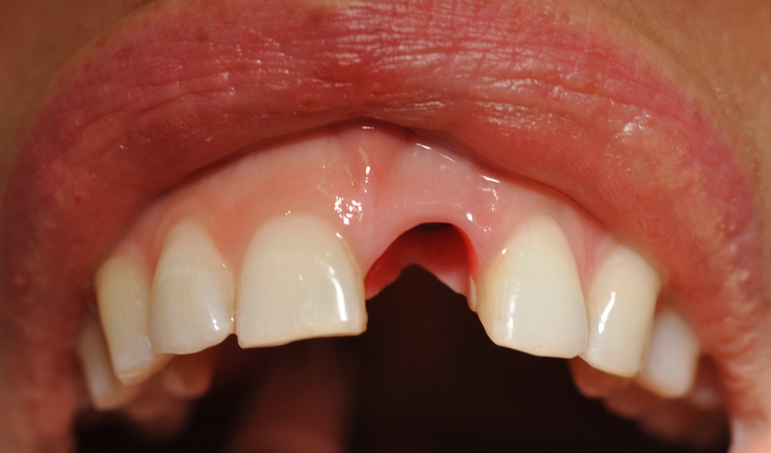 A graduate student came to our DENTOLOGY practice with a broken upper front tooth. Dr. Andrews recommended to replace it with a dental implant. Due to high smile line and anatomy of the area, this type of cases is considered to be one of the most challenging for a dentist to treat.