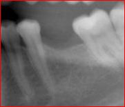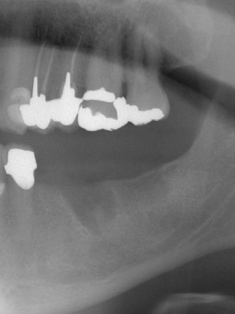This 65 year old man had pain in his lower jaw, during initial emergency exam after recent extraction of the lower left molar done with another dentist.
