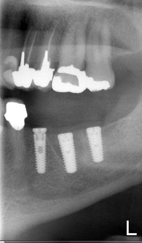 All three implants were successfully integrated and restored 6 months after the surgery.