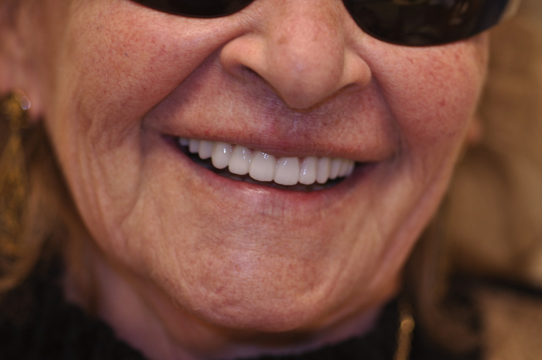 Her speech and chewing ability has instantly significantly improved. The satisfied patient regained quality of life she desired and expressed desire to replace the old upper denture with a new one as well.