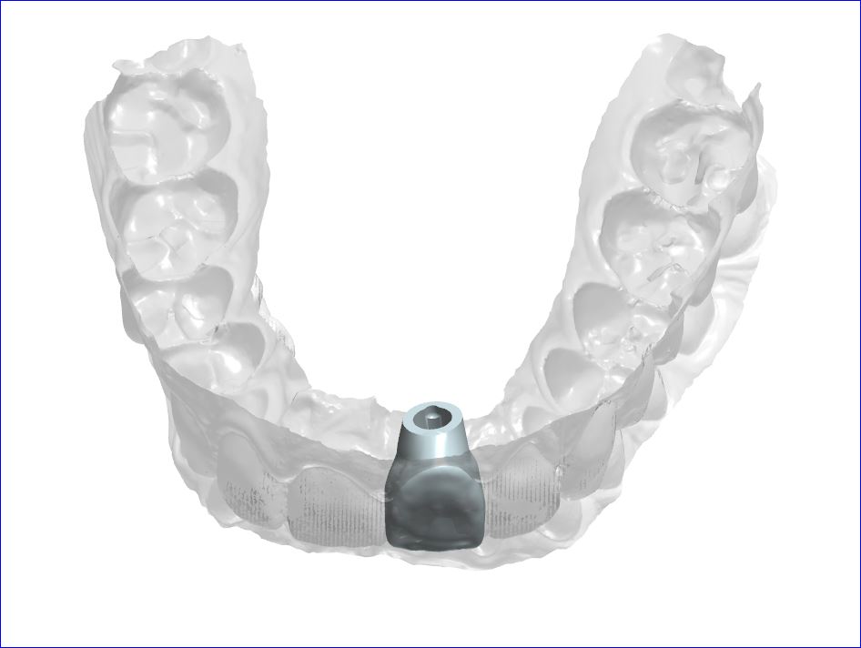 Without any incisions, Dr. Andrews removed the broken root and placed an implant along with a bone graft during the same surgery. Immediately, a temporary crown was attached to two other front upper teeth to form the ideal shape for the soft tissue profile.  A few months later, 3D Intraoral scan was taken and Dr. Andrews used Virtual Prosthodontics (CAD) and Reverse Restorative Rehabilitation Protocol to design Full Contour Zirconia (FCZ) screw-retained Implant Crown.